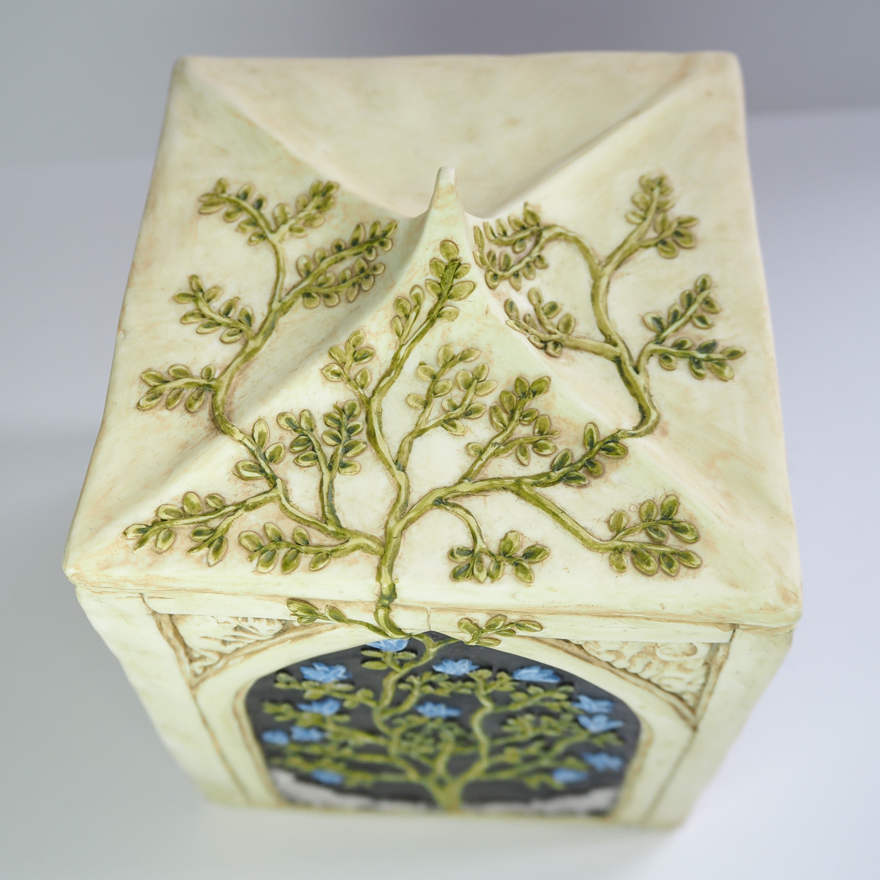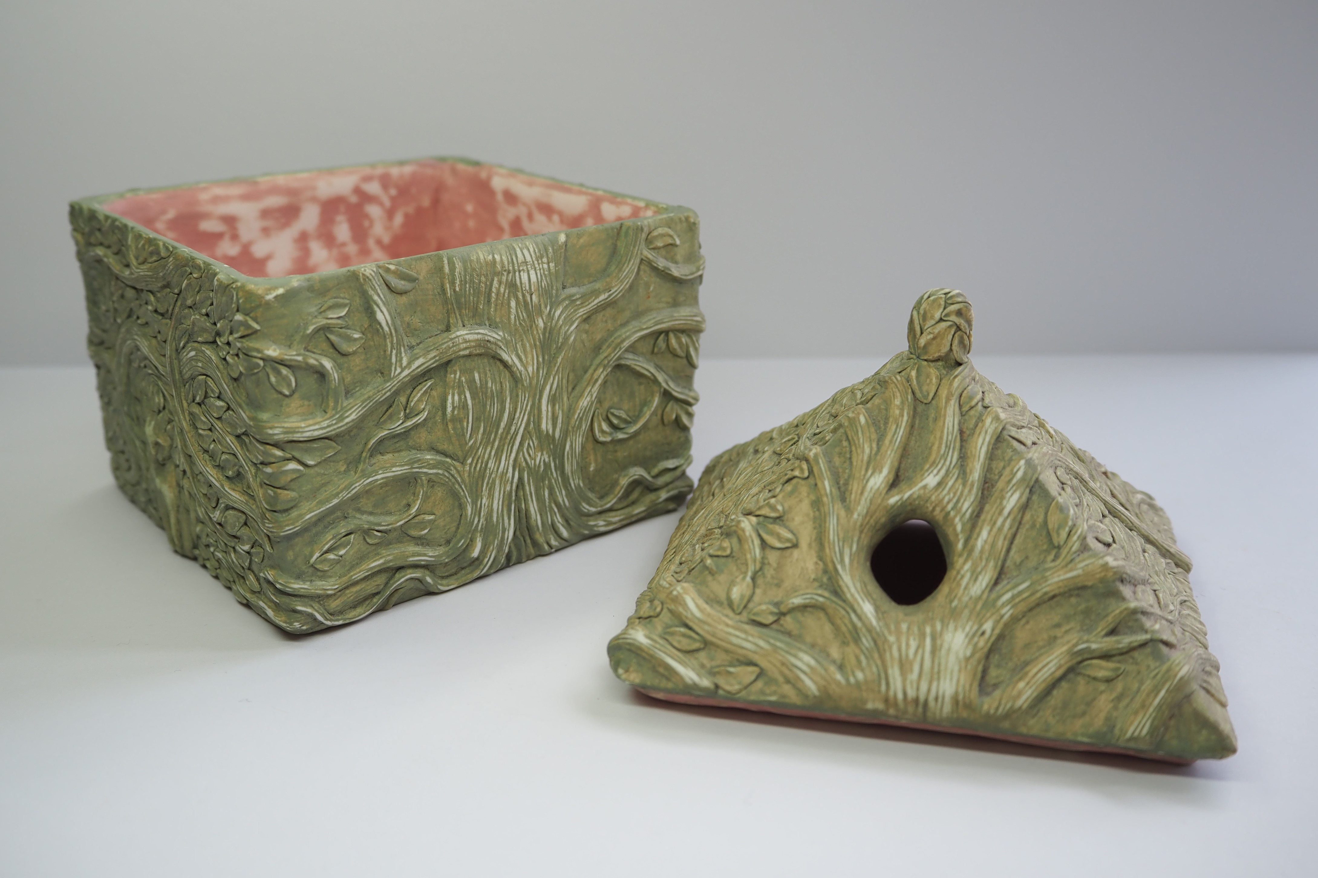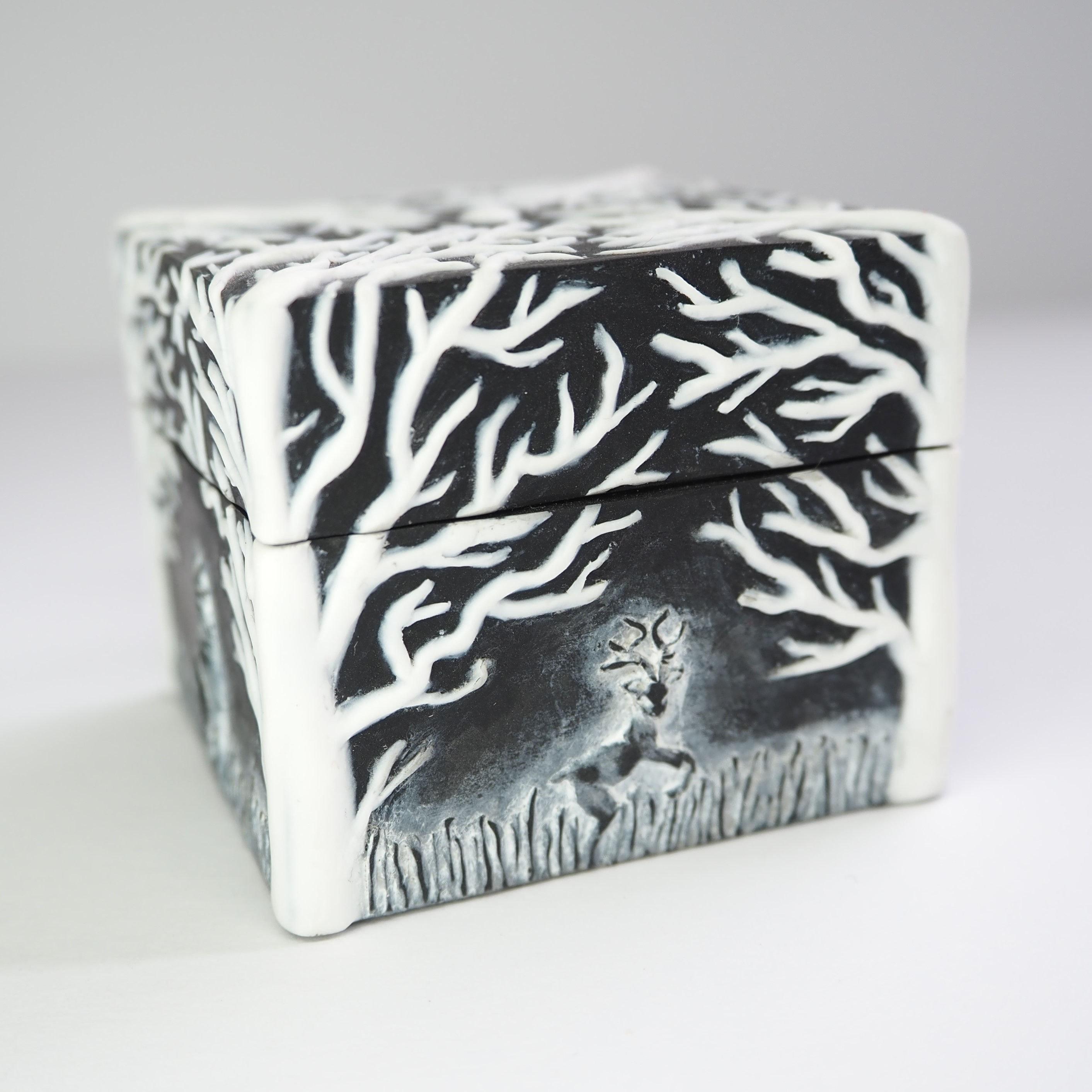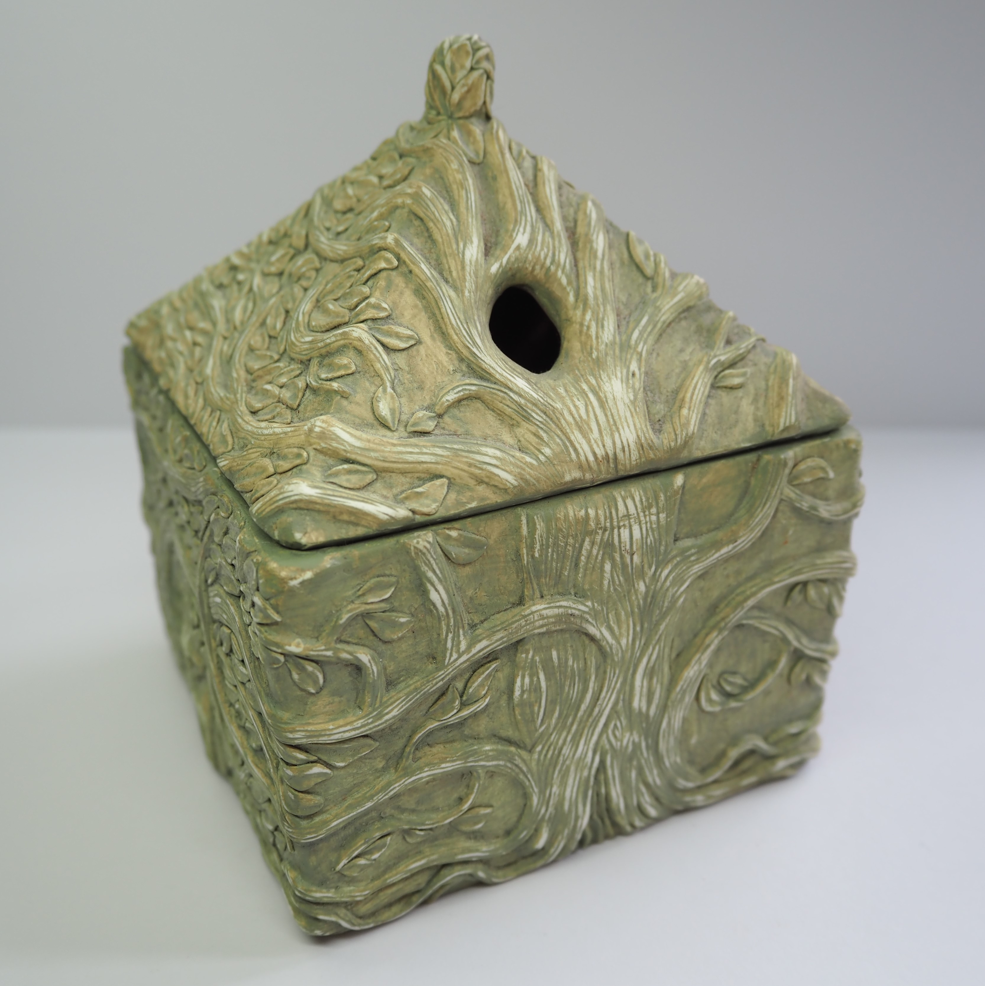 Hand sculpted boxes with intricate designs.
